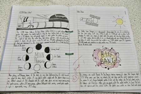 Ms Arbani explains: ‘An amazing STEAM synoptic opportunity was created for Year 8 on the topic of “Earth and Space” - to create a poster on four extension aspects across the whole topic studied. The pupils were given the brief to design a poster that would not only enlighten the reader, but would also act as a key source of extended research and writing. The four quadrants had to incorporate: the phases of the Moon; the Large Hadron Collider CERN; the Hubble Telescope; and the Big Bang Theory.’