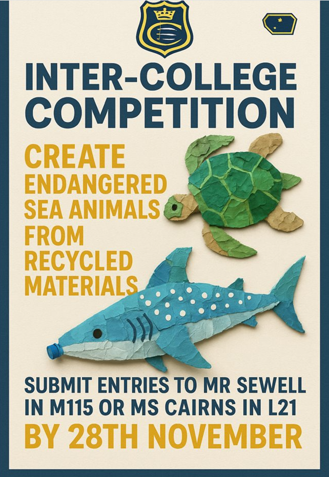 As part of the Green Leaders' initiatives, Claremont is hosting its first inter-college competition - Build an Endangered Sea Animal from recycled materials. A great opportunity to mix creativity with bringing awareness to destruction of marine wildlife, and an excellent chance to earn some college points!