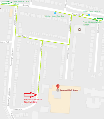 Students can enter and leave via Claremont Avenue and Greenway entrances at 8:15 am and following PM registration. After this time students must enter or leave via the Greenway Entrance.